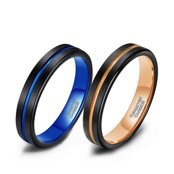 Two Tone 4mm Tungsten Rings Blue or Rose Gold Color for Couple Fine Customized Jewelry Unisex Brushed Wedding Bands Waterproof
