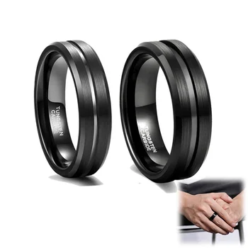 6mm 8mm Brushed Tungsten Rings Black Color for Man Customized Logo Fashion Jewelry Black Line Inlay Couple Wedding Bands