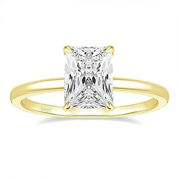 Rectangle Classic 3ct Rings 925 Sterling Sliver Wedding Couple Engagement Gold Ring with Stone Fashion Mom Rings for Ladies