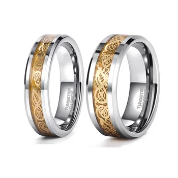 6mm 8mm Tungsten Carbide Ring Gold Dragon Inlay Polished for Couple Customized Jewelry Men's Wedding Bands Dropshipping