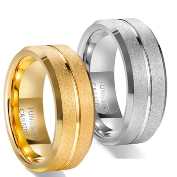 8mm Sandblasted Grooved Tungsten Rings for Couple Gold/Silver Plated Customized Jewelry Fashion Tungsten Carbide Wedding Bands