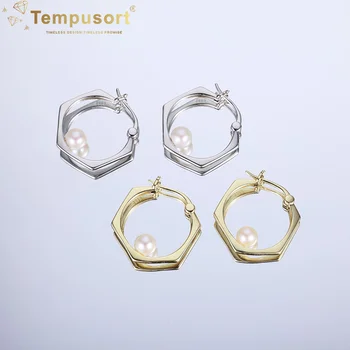 Tempusort Freshwater Pearl Hoop Earrings Cultured S925 Akoya Minimalist Women Jewelry Pearl Earrings