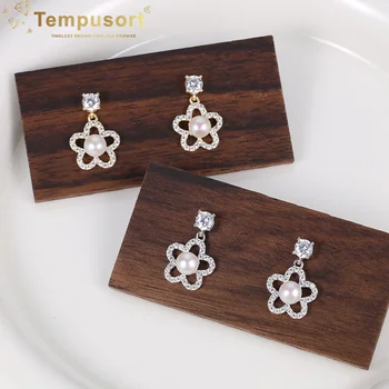 Tempusort Freshwater Pearl Drop Earrings S925 Akoya Cultured Pearl Floral Women Jewelry