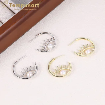 Tempusort Pearl Hoop Earrings S925 Evil Eyes Akoya Cultured Freshwater Pearl Women Jewelry